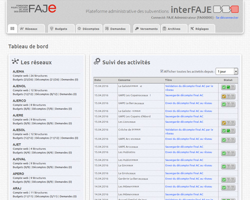 Plateforme administrative des subventions de la FAJE (Fondation pour l’Accueil de jour des enfants).